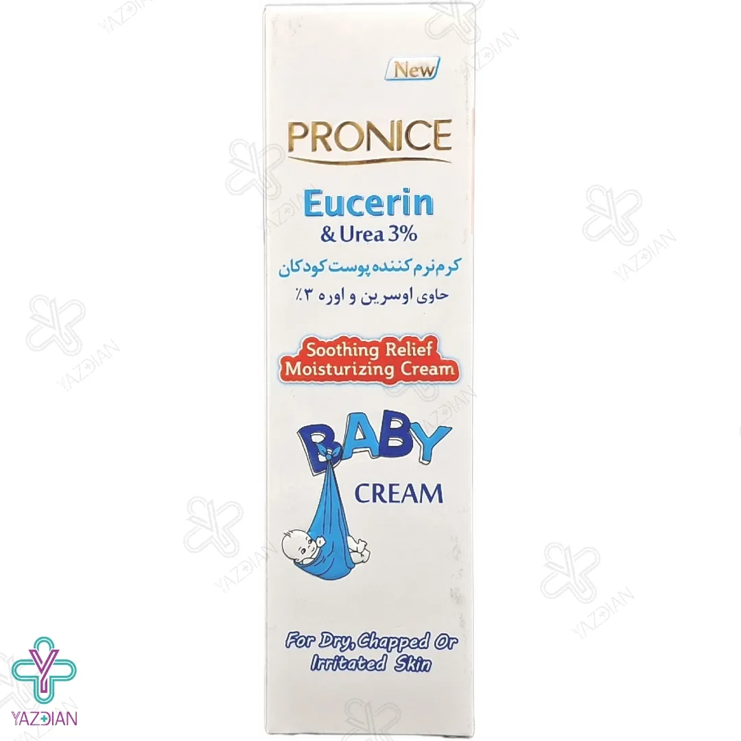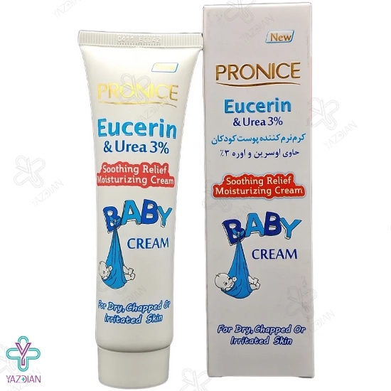 کرم نرم کننده اوسرین و اوره 3 درصد پرونایس (Eucerin and Urea softening cream 3% Pronice 100 ml) از دسته محصولات مراقبت از پوست کودک می باشد که باعث حفاظت از پوست حساس کودکان در مقابل زبری و خشکی می شود. این کرم محصول به صورت عمیق پوست را آب رسانی و مرطوب کرده و خارش و التهاب به وجود آمده در پوست را بهبود می بخشد. کرم نرم کننده ی 3 درصد پرونایس برای پوست کودکان مقوی و مغذی بوده و التهابات به وجود آمده در قسمت پوشک کودک را رفع کرده و قسمت های ترک خورده و خشک را احیا می کند.