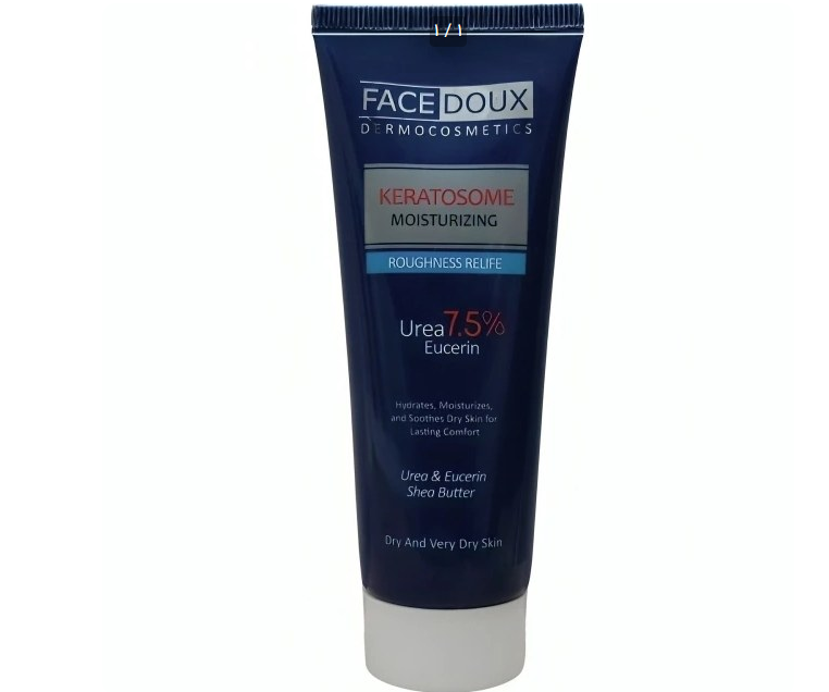 کرم مرطوب کننده و نرم کننده اوسرین اوره7/5% کراتوزوم فیس دوکس (Eucerin Urea 7/5% Keratosome face Doux Miosturizing and softening cream - 75 ml) یک محصول مناسب جهت رفع خشکی پوست می باشد این محصول با دارا بودن ترکیباتی موثر موجب مرطوب و نرم شدن پوست می شود اوره موجود در این محصول یک مرطوب کننده طبیعی می باشد که رطوبت محیط را جذب کرده و موجب حفظ آب در پوست می شود و هم چنین با لایه برداری ملایم موجب نرم شدن پوست خشک و خشن می شود اوره هم چنین با تقویت سد دفاعی پوست موجب باز سازی سد محافظتی پوست شده و در برابر عوامل آسیب زا مانند سرما، خشکی و شوینده ها مقاومت می کند و با دارا بودن خاصیت ضد التهابی خارش، سوزش و تحریکات ایجاد شده در اثر خشکی بیش از حد پوست را تسکین می دهد اوسرین موجود در این محصول که یک ترکیب مشتق شده از وازلین می باشد یک مرطوب کننده و محافظ پوست بوده و با ایجاد یک لایه محافظ بر روی پوست مانع از تبخیر رطوبت طبیعی پوست می شود و با ساختار چرب و غلیظ خود موجب نرم و لطیف شدن پوست می شود کرم مرطوب کننده فیس دوکس هم چنین دارای ترکیباتی شامل آلفا توکوفرول، لانولین، روغن بادام شیرین، شی باتر و گلیسرین می باشد.