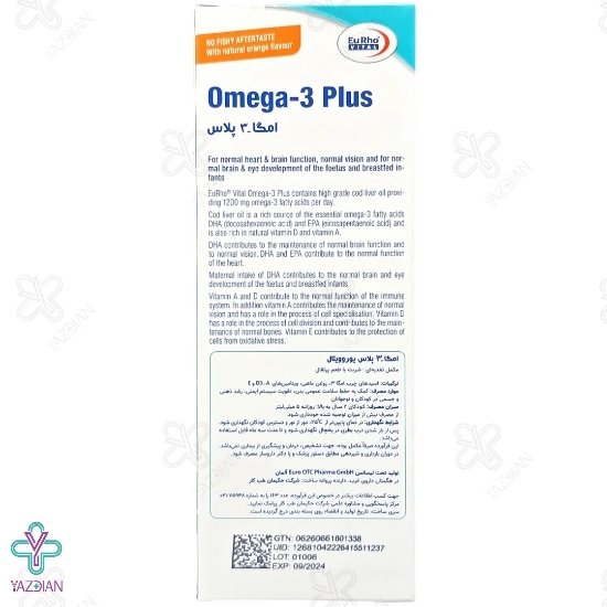 شربت امگا 3 پلاس یوروویتال (Eurho Vital Omega 3 Plus 200 ml) با دارا بودن مقادیر فراوانی از روغن کبد ماهی به همراه ویتامین های A، E و D در ترکیبات خود می تواند عملکرد طبیعی مغز و قلب را حفظ نموده و رشد ذهنی و جسمی کودکان و نوجوانان را بهبود ببخشد.