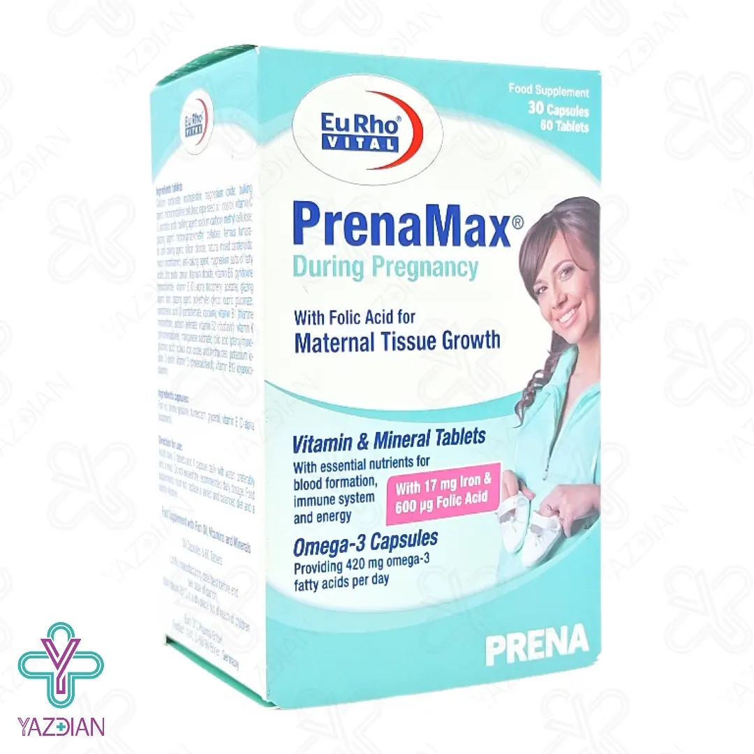 قرص مولتی پریناتال پرینامکس دیورینگ پرگننسی یوروویتال (Eurho Vital PrenaMax During Pregnancy 90 Tabs) با بهره گیری از فرمولاسیون ویژه و موثر خود، کلیه نیاز های مادر را در دوران بارداری و شیردهی تامین می کند.