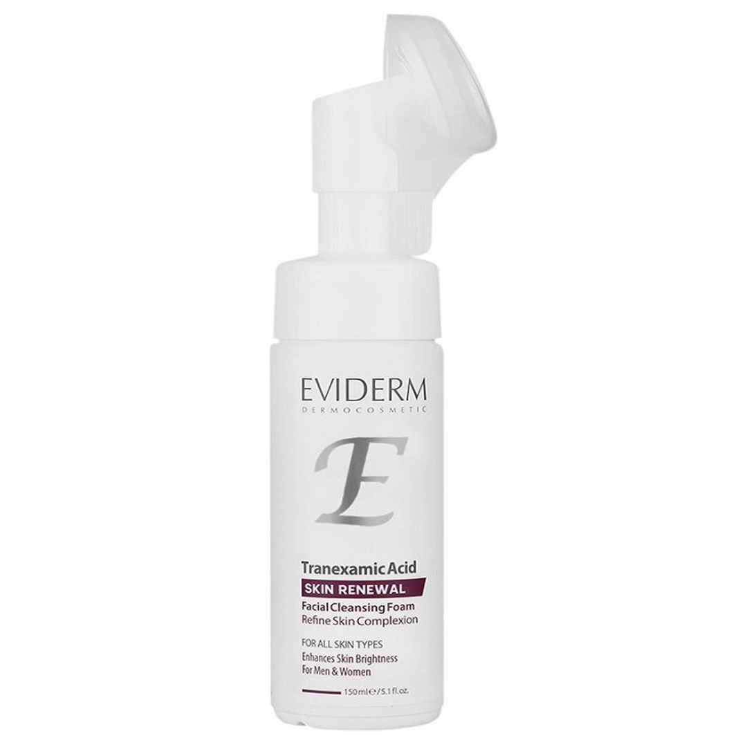 فوم شوینده ضد لک ترانگزامیک اسید اویدرم - 150 میلی لیتر (Eviderm Anti-Blemish Facial Cleansing Foam Containing Tranexamic Acid) از پیشرفته ترین ترکیبات پوستی تشکیل شده است که با بهره گیری از آربوتین، عصارههای گیاهی و پروتئینهای هیدرولیز شده و ترانگزامیک اسید در دوز مناسب، به صورت تخصصی ضمن پاکسازی منافذ پوستی، لک و تیرگی های پوستی را محو ساخته و رنگ پوست را یکنواخت می سازد. استفاده از فرمولاسیون ملایم این محصول سبب شده است تا لک های ناشی از تغییرات هورمونی، آفتاب و یا التهابات پوستی را بدون ایجاد قرمزی و التهاب از بین می برد.