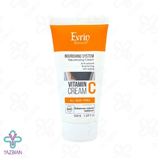 کرم مغذی و جوان کننده ویتامین ث اورین (Evrin nourishing and rejuvenating vitamin C cream – 50 ml) پوست را تغذیه کرده و آن را به مدت طولانی آب رسانی و مرطوب کرده و به همین دلیل از خشکی آن پیشگیری می کند، از دیگر ویژگی های این محصول این است که مناسب استفاده برای تمامی پوست ها بوده و از آن در مقابل نور زیان آور آفتاب حفاظت می کند، این کرم دارای دوز بالای ویتامین سی پایدار است به همین دلیل باید طبق دستور از آن استفاده کرد، این محصول تولید کلاژن و الاستین در پوست را افزایش داده و به همین دلیل چین و چروک های ایجاد شده بر روی پوست را بهبود می بخشد، این کرم تیرگی و لک های پوستی را از بین برده و به روشن شدن پوست بسیار کمک می کند، این محصول هم چنین باعث زیاد شدن استحکام پوست شده و نشانه های خستگی را از روی پوست برطرف می کند و در نتیجه پوستی نرم، جوان و شاداب به شما می بخشد.