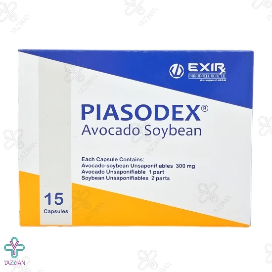 کپسول مفاصل پیاسودکس اکسیر (Exir Piasodox Avocado And Soybean 15 Capsules)از دسته مکمل های گیاهی مفاصل و استخوان می باشد. این کپسول با هدف افزایش بازسازی بافت غضروف و کاهش میزان دردهای آرتروزی فرموله شده است و برای رسیدن به این هدف از عصاره های آووکادو و سویا بهره برده است. افرادی که این کپسول را مصرف می نمایند، به مصرف مسکن نیاز کمتری پیدا می کنند.