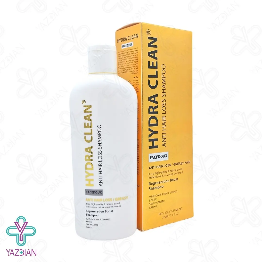 شامپو ضد ریزش موهای چرب هیدراکلین فیس دوکس - 220 میلی لیتر (Face Doux Hydra Clean Anti Hair Loss Shampoo For Greasy Hair 220 ml) یک شامپو فرموله شده تخصصی برای موهای چرب می باشد که با موادی کاملا ارگانیک از جمله سائوپالمتو، روغن آفتاب گردان، زینک سولفات، بیوتین، کافئین، کپکسیل ساخته شده است. این محصول عملکرد فوق العاده موثری در کنترل ریزش مو ها دارد؛ چرا که ترشح چربی پوست سر را کنترل کرده و استحکام مو ها را دو چندان می کند.