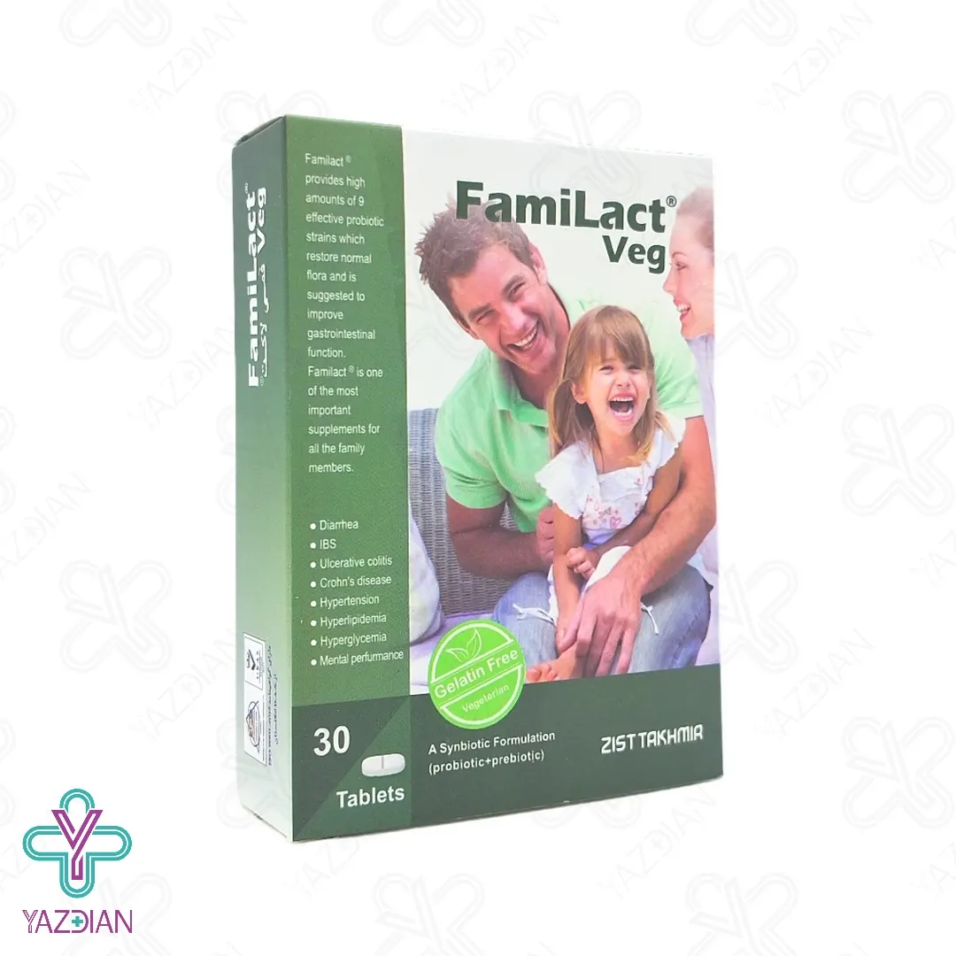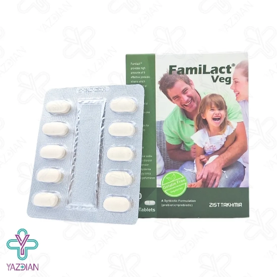 مشکلات گوارشی یکی از بیماری های شایع می باشد که معمولا همه افراد خانواده با هر سنی را در گیر می کند، قرص فمی لاکت وگ زیست تخمیر (Fami lact Veg biofermentation tablet – 30 pcs) محصول مناسبی برای مشکلات گوارشی برای سنین 10 تا 50 سال می باشد، این محصول دارای پروبیوتیک و پری بیوتیک می باشد و دارای 9 سویه باکتری امین و سودمند به همراه فروکتوالیگوساکارید بوده، باکتری های بسیار زیادی در دستگاه گوارش انسان وجود دارد که بیشتر آن ها مفید بوده و به آن فلور میکروبی گفته می شود.