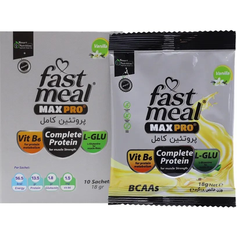 فست میل مکس پرو وانیلی اسمارت نوتریشن (Fast Meal Max Pro Vanilla Smart Nutrition – 10 pcs) دارای ترکیبات موثری است که موجب برطرف شدن نیاز های پروتئین بدن می شود در این محصول از انواع ویتامین ها، مواد معدنی مانند امگا 3 استفاده شده است که موجب حفظ سلامت عضلات، قلب و مغز شده و سطح انرژی را افزایش می دهد و موجب بهبود عملکرد بدن می شود، این محصول دارای طعم وانیل می باشد که موجب افزایش پروتئین، رژیم غذایی می شود، در این محصول از پروتئین شیر و پروتئین ایزوله سویا استفاده شده است و هم چنین دارای اینولین، مالتودکسترین، نشاسته ذرت، سوکرفر، روغن های گیاهی، املاح معدنی و ویتامین می باشد که به بهبود عملکرد بدن و افزایش انرژی بسیار تاثیر گذار می باشد و یک محصول و گزینه مناسب برای افرادی است که سوء تغذیه دارند.