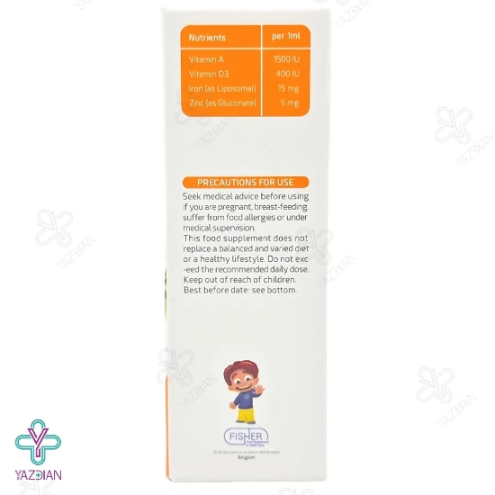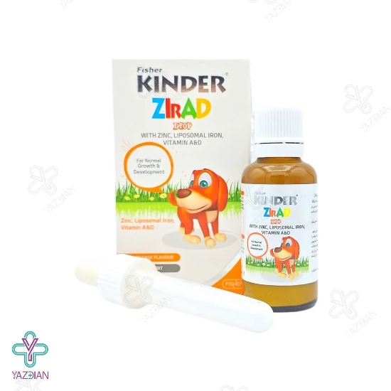 قطره آهن و ویتامین زیراد فیشر کیندر(Fisher Kinder Zirad Drop 30 ml) یک دارو برای کم خونی کودکان می باشد که با دارا بودن آهن، زینک و ویتامین های A و D در فرمولاسیون خود می تواند رشد ذهنی و جسمی نوزادان و کودکان را به خوبی تقویت نماید. فرم آهن به کار رفته در این مکمل از نوع لیپوزومال است، بنابراین در مقایسه با مکمل های مشابه، از قدرت جذب بالاتر و عوارض گوارشی کمتری برخوردار می باشد.