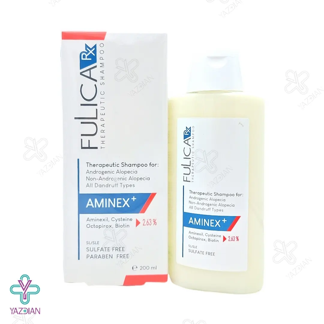 شامپو آمینکس پلاس فولیکا آر ایکس - 200 میلی لیتر (Fulica RX AMINEX Sulfate Free Therapeutic Shampoo 200 ml) ضمن پاکسازی کامل مو از انواع آلودگی های محیطی، با فرمولاسیون ویژه خود که شامل پیروکتون اولامین، آمینیکسیل، بیوتین و سیستئین می باشد، عملکرد فوق العاده ای در کاهش انواع الگوی ریزشی (آندروژنیک و غیرآندروژنیک) داشته و محرک رشد مو هاست. این شامپو با خون رسانی به فولیکول های مو، موها را تقویت و تغذیه کرده و ساقه مو ها را نیز مستحکم و قوی می کند. برای گرفتن نتیجه از این محصول حداقل باید هفته ای سه بار از آن استفاده کنید.