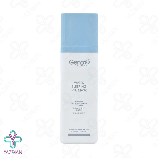 ماسک خواب دور چشم ژنوبایوتیک (Geno Biotic Water Sleeping Eye Mask 30 ml)با جذب رطوبت هوا به پوست، ضمن رطوبت رسانی باعث رفع خستگی و سم زدایی پوست می شود و صبح روز بعد پوستی شاداب و باطراوت را به شما هدیه می دهد. این ماسک با نفوذ به داخل سلول ها و بهبود جریان خونرسانی و رطوبت رسانی عمیق دور چشم در طول شب، ضمن از بین بردن پف و چروک های ریز اطراف چشم، موجب روشنی و آبرسانی پوست ناحیه زیر چشم شما می شود.