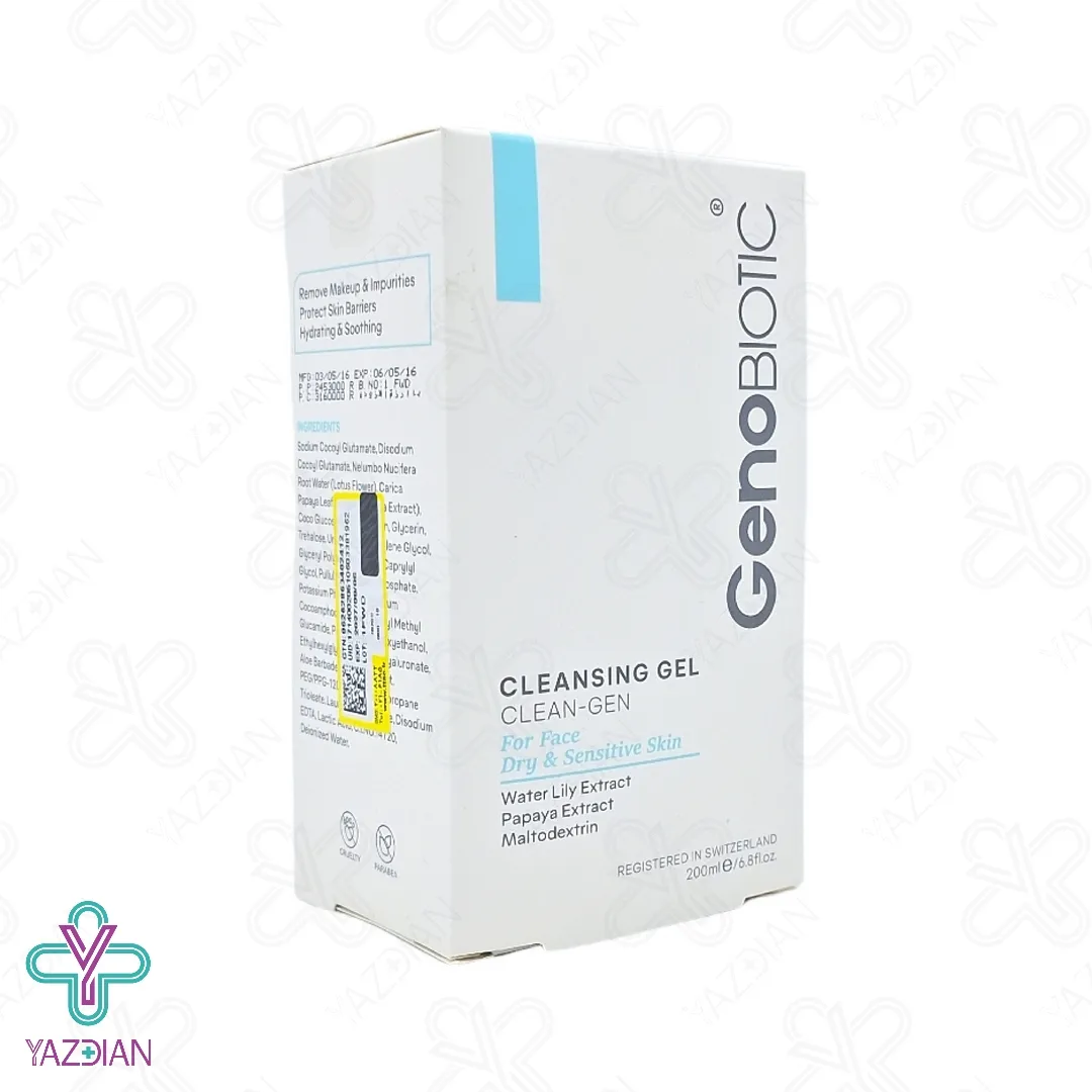 ژل شستشوی پوست خشک و حساس ژنو - 200 میلی لیتر (Genobiotic Cleansing Gel For Dry And Sensitive Skin 200 ml) قدرت پاکسازی عمقی پوست از آلودگی های محیطی و شیمیایی، سلول های مرده و چربی های اضافه را دارد و بدون اینکه باعث ایجاد خشکی پوست تان شود، آن را از تاثیرات مخرب ناشی از آلودگی ها ایمن می سازد. بعلاوه قدرت آبرسانی بالایی هم داشته و با تامین رطوبت لازم لایه های سطحی و عمقی پوست، از خشکی و پوسته پوسته شدن آن جلوگیری می کند. همچنین خاصیت ضد التهابی نیز دارد و پوست را در برابر قرمزی، تحریکات پوستی و خارش ایمن می سازد. این ژل قابلیت شستشوی روزانه را داشته و ph ای کاملا متناسب با پوست خشک و حساس دارد.