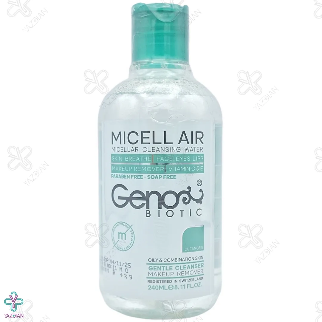 محلول پاک کننده میسلار ژنو بایوتیک مخصوص پوست مختلط و چرب، یکی از بهترین شوینده های صورت با خاصیت آنتی باکتریالی است. این محلول با استفاده از فناوری نوین میسل، علاوه بر از بین بردن چربی و براقیت پوست و آلودگی های روزانه که بر روی پوست می نشینند می تواند پوست را از انواع میکاپ پاکسازی کند. این محصول فاقد پارابن، مواد صابونی، روغن و الکل می باشد و بنابراین برای افرادی که پوست حساسی دارند بسیار مناسب است.
