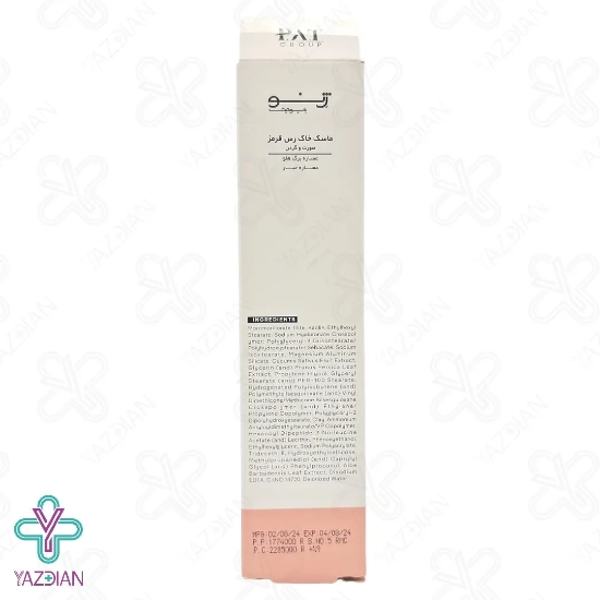ترکیبات فنولیک موجود در این محصول دارای خواص آنتی اکسیدانی بوده و از پوست در برابر رادیکال های آزاد محافظت می کند و از پیری پوست نیز جلوگیری می کند، خاک رس قرمز نیز از دیگر ترکیبات موجود در این محصول بوده که سبب لایه برداری ملایم پوست شده و ترشح چربی پوست را تنظیم کرده و سبب کوچک شدن منافذ پوست می شود، عصاره خیار موجود در این محصول نیز سبب آب رسانی و مرطوب شدن پوست شده و از خشکی و کشیدگی پوست جلوگیری می کند.