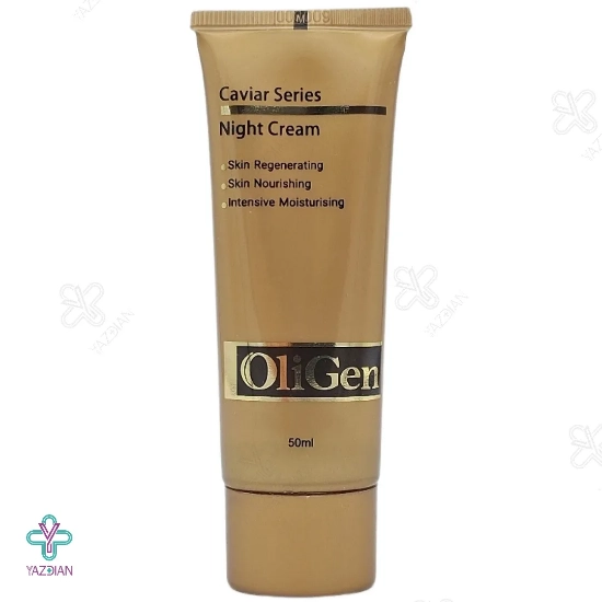 کرم شب مرطوب کننده عصاره خاویار الی ژن (Oligen Night Cream – Caviar Series 50 ml) با دارا بودن عصاره ارزشمند خاویار و دیگر عصاره های مؤثر نظیر پروتئین ابریشم، گل همیشه بهار، روغن آرگان، روغن بذر کتان و ویتامین های E و B5 در فرمولاسیون خود می تواند خاصیت کشسانی پوست را افزایش داده و باعث استحکام و سفتی هر چه بیشتر پوست شود. همچنین آسیب های محیطی و استرس های پوستی را برطرف نماید.