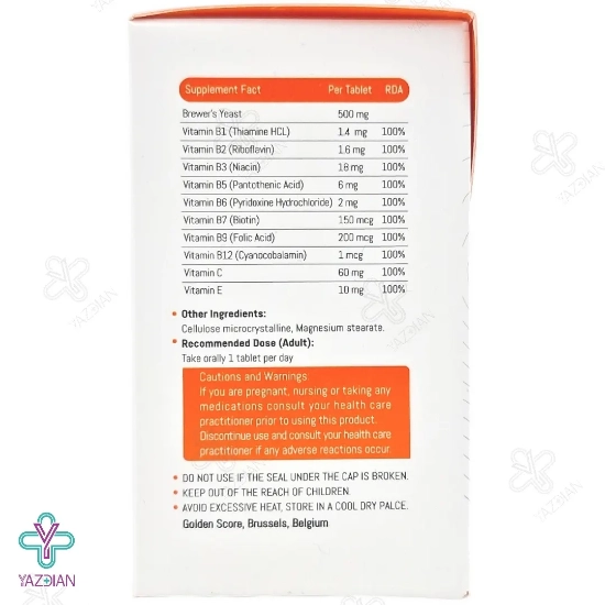 با مصرف این قرص به دلیل ویتامین های گروه B موجود در آن، می توان سوخت و ساز بدن را بهبود بخشیده و انرژی روزانه آن را افزایش داد. همچنین به واسطه افزایش تولید گلبول های قرمز خون، سلامت پوست، مو و ناخن را تقویت کرد. این قرص به واسطه ویتامین های E و C موجود در فرمولاسیون خود می تواند سلول های آسیب دیده را بازسازی کرده و از پوست و بدن در برابر استرس اکسیداتیو و پیری زود رس محافظت نمود. اختلالات گوارشی بدن نیز به دلیل مخمر آبجو به کار رفته در این قرص بهبود یافته و انرژی مورد نیاز بدن تأمین می شود. تقویت سیستم ایمنی، حفظ سلامت مغز، پوست، مو، دهان و چشم و همچنین کنترل قند خون از دیگر ویژگی های مخمر آبجو می باشند.