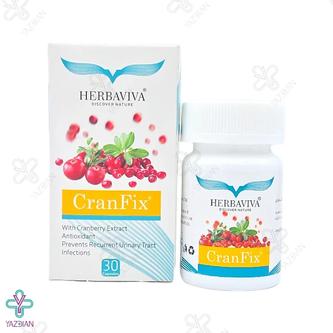کپسول کرن فیکس هرباویوا (Herbaviva Cran Fix 30 Capsules) از عصاره میوه کرن بری در ترکیبات خود برخوردار بوده و با بهره گیری از خاصیت آنتی اکسیدانی آن می تواند عفونت های مجاری ادراری را بهبود بخشیده و مانع از بازگشت مجدد این بیماری شود.