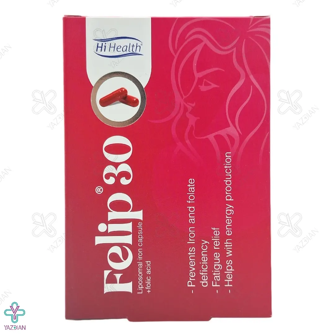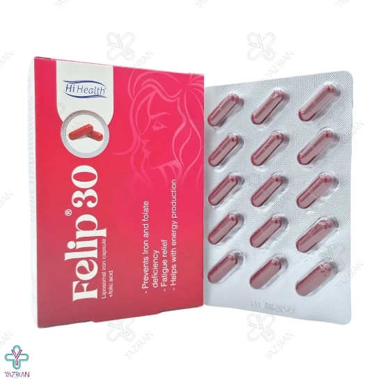 کپسول آهن فلیپ 30 های هلث (Hi Health Felip 30 – 30 Caps) با دارا بودن 30 میلی گرم آهن لیپوزومال و 1میلی گرم فولیک اسید در ترکیبات خود، می تواند کم خونی حاصل از فقر آهن را درمان کند. این مکمل برای افراد مبتلا به کولیت اولسراتیو، افراد درگیر ناراحتی های گوارشی و همچنین بانوان باردار مناسب می باشد.