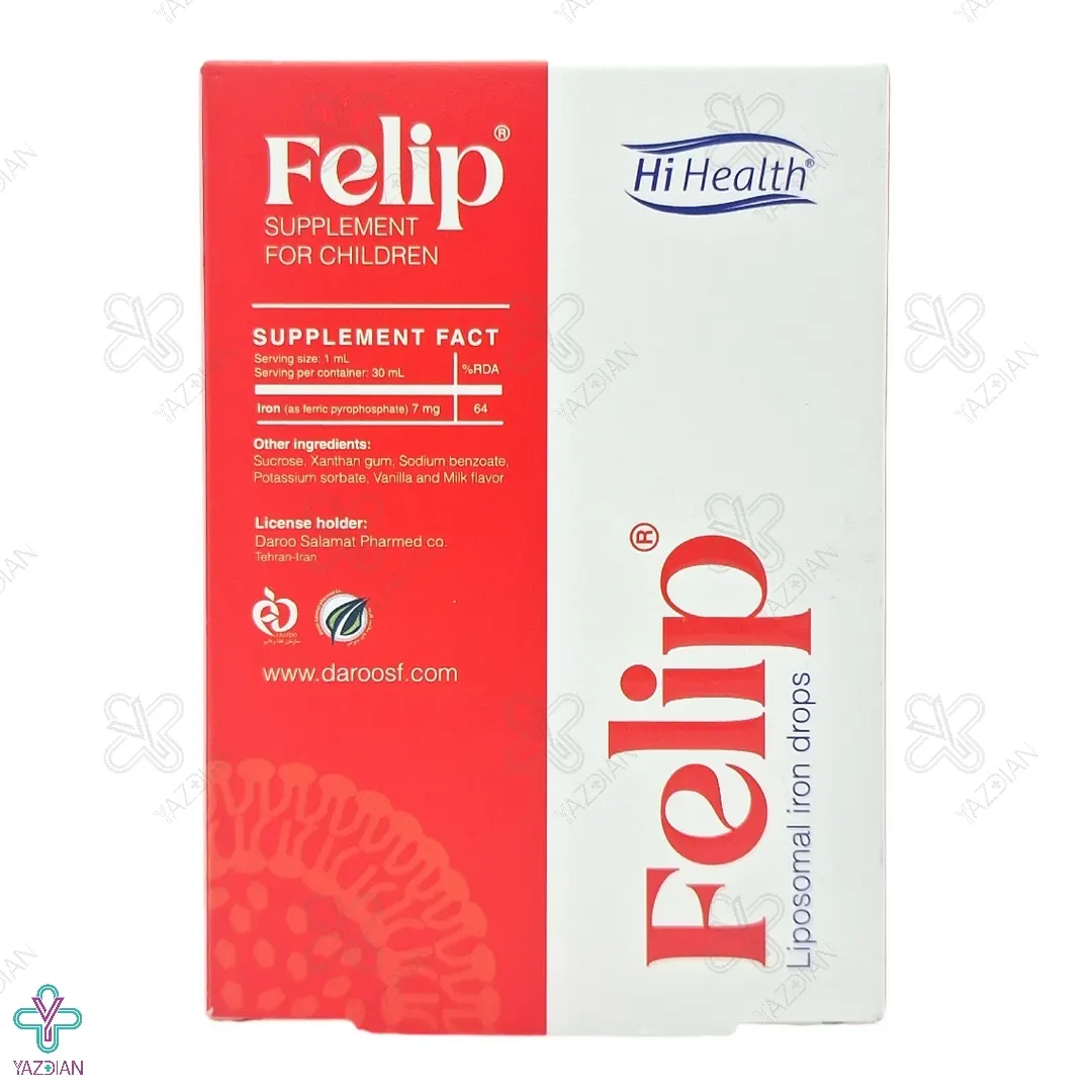 قطره آهن فلیپ های هلث (Hi Health Felip Liposomal Iron Drops 30 ml) یکی از مهم ترین و تاثیر گذارترین مکمل هاست و دارو برای کم خونی کودکان می باشد. با استفاده از قطره آهن فلیپ های هلث که بسیار مغذی می باشد، می توانید برای درمان و بهبود کم خونی ناشی از فقر آهن در کودکان استفاده کنید و با تأمین آهن مورد نیاز بدن کودکان می توانید کمک بسیاری در رشد و تکامل ذهنی کودکان داشته باشید، قطره آهن فلیپ های هلث فاقد طعم فلز و بدون سیاه شدن رنگ دندان های کودکان می باشد.