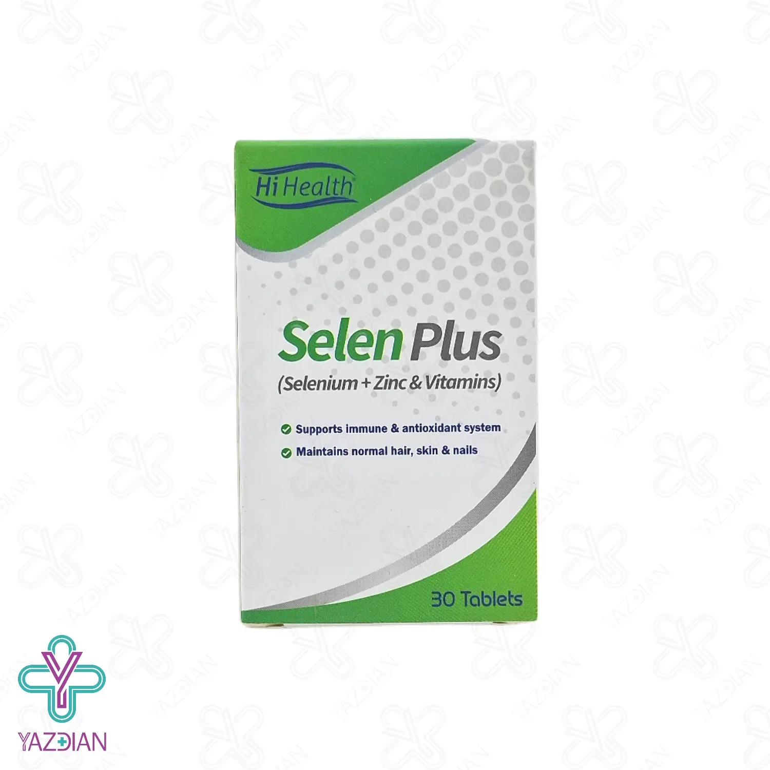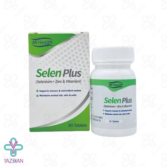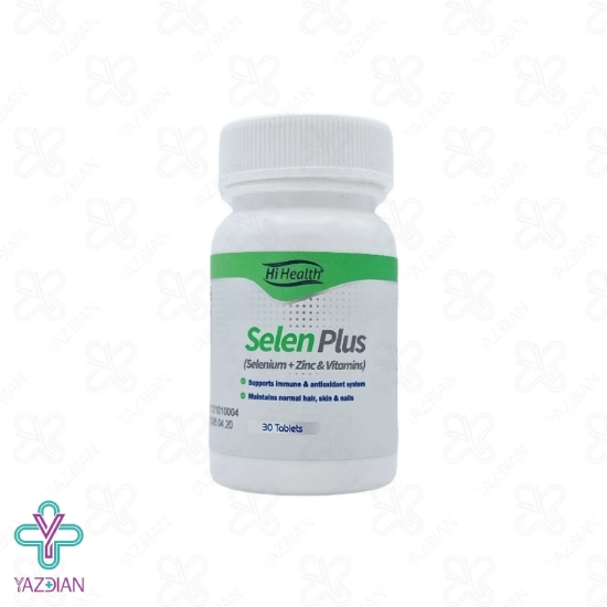 قرص سلنیوم سلن پلاس های هلث - 30 عددی (Hi Health Selenium 200 mcg 30 Tablets) کلیه نیاز های بدن به زینک و سلنیوم را برطرف کرده و حافظ سلامتی و زیبایی پوست، مو و ناخن بوده و با بهره گیری از ویتامین های A,E,C، خاصیت آنتی اکسیدانی داشته و تقویت کننده سیستم ایمنی بدن می باشد. این قرص با فرمولاسیون ویژه خود، مواد مغذی لازم بدن را تامین کرده و از سفیدی زود رس مو ها جلوگیری می کند.
