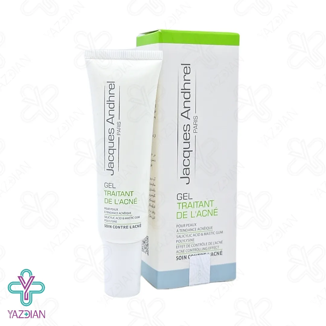 ژل ضد جوش ژاک آندرل - 30 میلی لیتر (Jacques Andhrel Paris Traitant Gel ۳۰ Ml) شرایط رشد باکتری های مولد آکنه را نابود می سازد و با کنترل میزان چربی ترشحی از غدد چربی، مانع از تجمع چربی بیش از حد زیر پوست می شود. این محصول از بروز جوش های سر سیاه و سر سفید جلوگیری می کند و التیام بخش قرمزی و التهابات پوستی است.