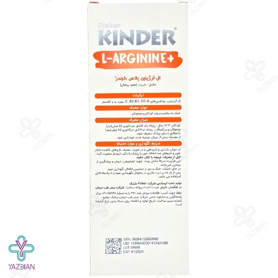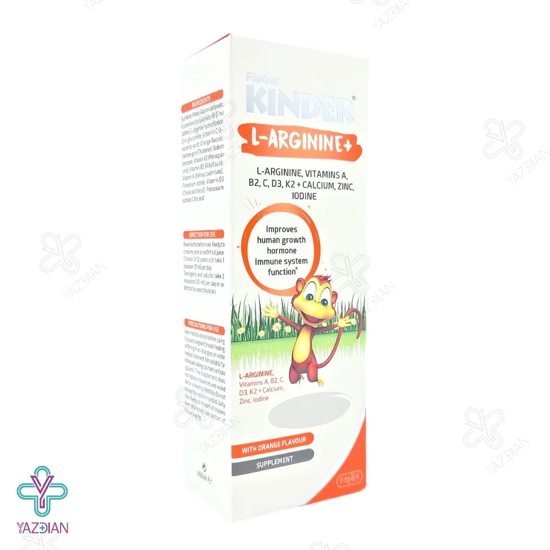 شربت ال آرژنین پلاس فیشر کیندر (Kinder L-Arginine Plus Syrup 200 ml) با تحریک هورمون رشد سبب زیاد شدن میزان رشد قدی در کودکان و نوجوانان می شود. یکی از ویژگی های این شربت این است که با طعم دل نشین پرتقال تولید شده است به همین دلیل کودکان به آسانی می توانند از آن استفاده کنند.