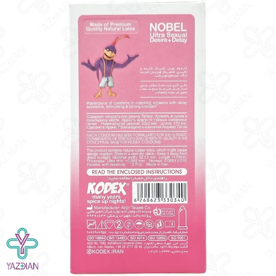 کاندوم تاخیری نوبل کدکس (Kodex Nobel Ultra Sexual Delay Condom 12 Pcs) از انتقال بیماری های آمیزشی و بارداری پیشگیری می کند.