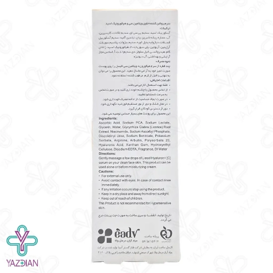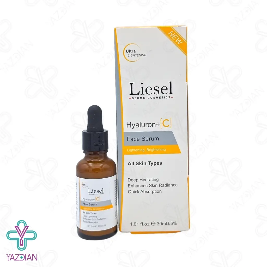 سرم روشن کننده ویتامین ث و هیالورونیک اسید لایسل (Liesel Hyaluron and vitamin C face serum – 30 ml) دارای ترکیبات موثری است که ضمن آب رسانی عمقی پوست موجب روشن و شفاف شدن پوست می شود ویتامین سی موجود در این محصول دارای خاصیت آنتی اکسیدانی بوده و از پوست در برابر اثرات مخرب رادیکال های آزاد محافظت می کند و موجب کند شدن روند پیری پوست می شود ویتامین سی موجب تحریک تولید کلاژن شده و در نتیجه موجب بهبود خاصیت ارتجاعی و استحکام پوست می شود هیالورونیک اسید موجود در این محصول توانایی نگه داری مقدار زیادی آب در خود دارد که پوست را به صورت عمقی آب رسانی می کند وجود هیالورونیک اسید و ویتامین سی در این محصول ضمن روشن شدن پوست و کاهش لک ها موجب شادابی و طراوت پوست می شود این محصول دارای بافت سبک و جذب سریع می باشد و به سرعت در لایه های عمیق پوست نفوذ کرده و هیچ گونه احساس چربی و سنگینی ایجاد نمی کند این محصول برای انواع پوست مناسب می باشد.