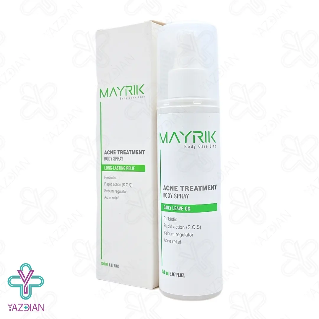 اسپری ضد جوش بدن میریک (Mayrik anti acne body spray - 150 ml) از به وجود آمدن جوش و آکنه در بدن جلوگیری می کند، از دیگر ویژگی های این محصول این است که التهاب را کاهش داده و هم چنین میزان تولید چربی در پوست را تنظیم می کند، این اسپری منافذ پوست را به صورت عمیق پاک سازی کرده و در نتیجه از بسته شدن منافذ و به وجود آمدن جوش های جدید جلوگیری می کند.