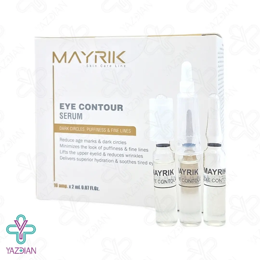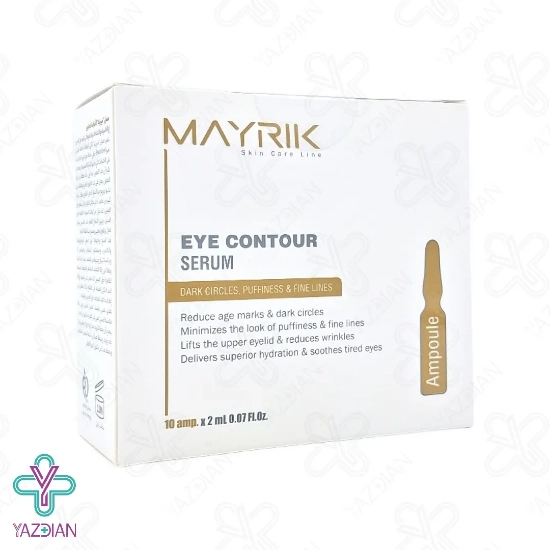 ویال سرم سه کاره دور چشم میریک - 10 عددی (mayrik eye contour serum) با عملکرد چند منظوره خود (ضد پف و ورم اطراف چشم، بهبود کبودی و تیرگی دور چشم و ضد چروک) شما را بی نیاز از خرید چند محصول متفاوت کرده و یک پیشنهاد عالی جهت حفظ سلامت پوست دور چشم می باشد. این محصول با بهره گیری از مواد فعال، قدرتمند و اثر بخش خود، پوست دور چشم را تقویت و تغذیه رسانی کرده و به میزان چشمگیری چین و چروک و خطوط پنجه کلاغی دور چشم را بهبود می بخشد. همچنین حلقه های سیاه دور چشم را از بین برده و پف زیر چشم را می خواباند.