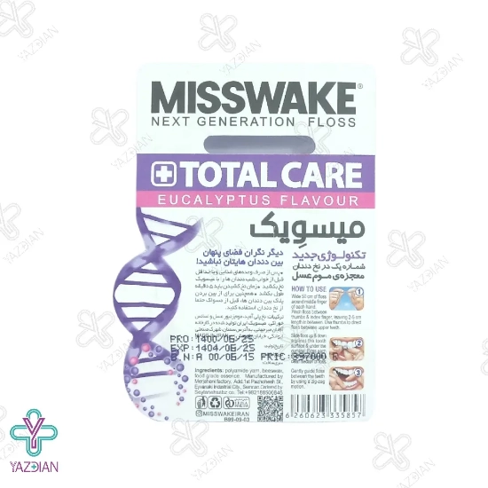 نخ دندان توتال کر میسویک به دلیل آن که دارای موم زنبور عسل است، تکه های غذا را که با مسواک زدن هم تمیز نمی شود به آسانی از روی دندان پاک می کند.