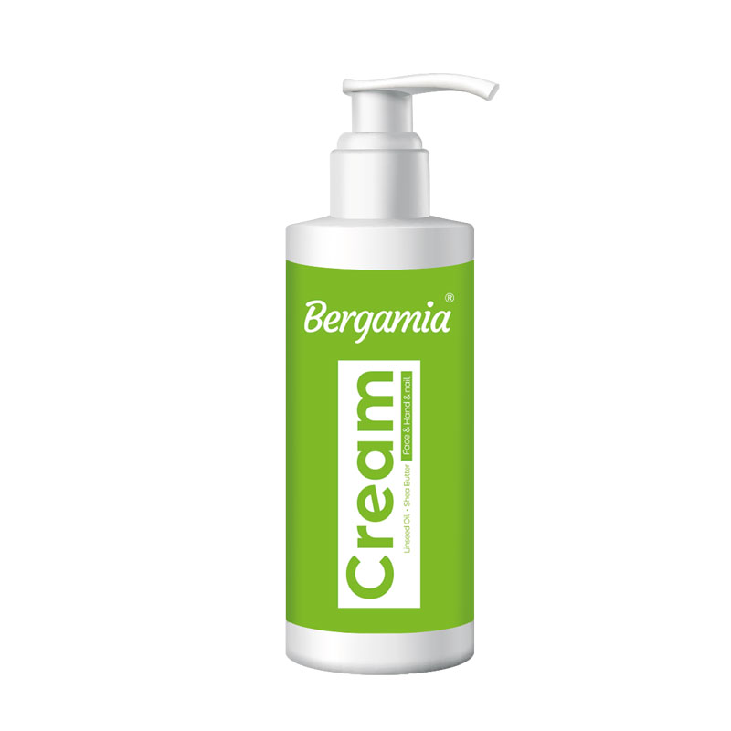 کرم مرطوب کننده کتان پمپی برگامیا - 250 میلی لیتر (moisturizer bergamia face hand nail cream with linseed oil shea butter 250ml) با بهره گیری از ترکیبات موثر و مفید، رطوبت لازم و طبیعی پوست را حفظ کرده و از بروز چین و چروک های پوستی روی انگشتان جلوگیری می کند.