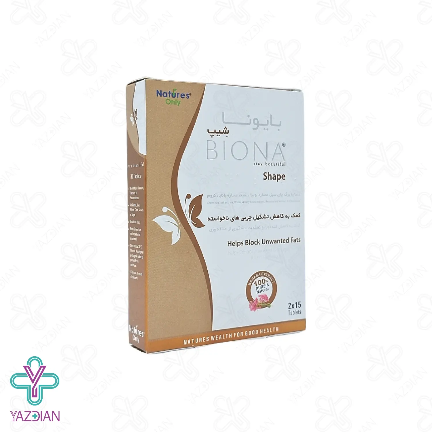 قرص لاغری بایونا شیپ نیچرز اونلی (Natures Only Biona shape 30 Tablets) میزان تشکیل چربی های ناخواسته را با زیاد شدن فعالیت متابولیسمی بدن کاهش می دهد، از دیگر ویژگی های این محصول این است که اگر از آن به صورت منظم استفاده کنید باعث کنترل وزن و جلوگیری از اضافه وزن می شود، چون با کنترل اشتها استفاده ی زیادی کالری کم می شود، عصاره ی لوبیا سفید از ترکیبات به کار رفته در این قرص است که میزان جذب کربوهیدرات از مواد غذایی را کاهش داده که در نتیجه باعث کاهش قندهای خون و وزن می شود، عصاره ی چای سبز نیز از دیگر ترکیبات موجود در این محصول بوده و به دلیل داشتن خواص آنتی اکسیدانی موثر و قوی در خود از پیری زودرس سلول ها جلوگیری می کند.