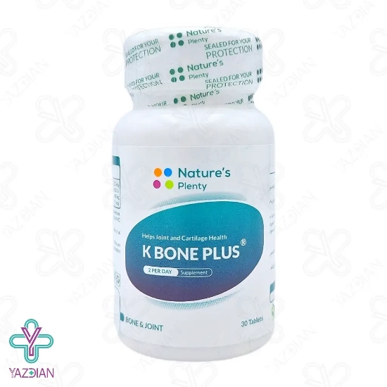 قرص کی بون پلاس نیچرز پلنتی - 30 عددی (Natures Plenty K Bone Plus 30 Tablets) یک مکمل غذایی با ارزش بالا می باشد که با بهره گیری از مقادیر زیادی از ریز مغذی ها از جمله ویتامین D۳ و K۲، کلسیم و منیزیم، عملکرد فوق العاده ای در حفظ سلامت استخوان ها و مفاصل دارد. کلسیم بکارگیری شده در این محصول به فرم سیترات می باشد که عوارض گوارشی بسیار کمتری نسبت به فرم کربنات کلسیم دارد. بدین خاطر به افراد با حساسیت بالای گوارشی مصرف قرص کی بون پلاس توصیه می شود.