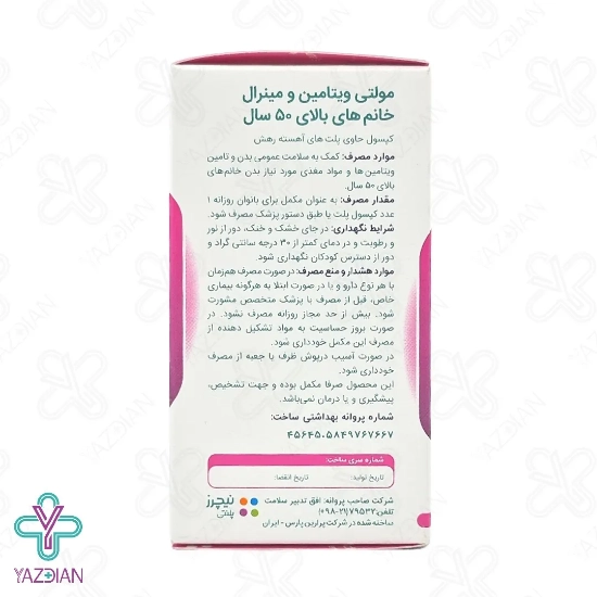 این محصول مولتی ویتامین مورد نیاز بدن بانوان بالای 50 سال را تامین می کند.