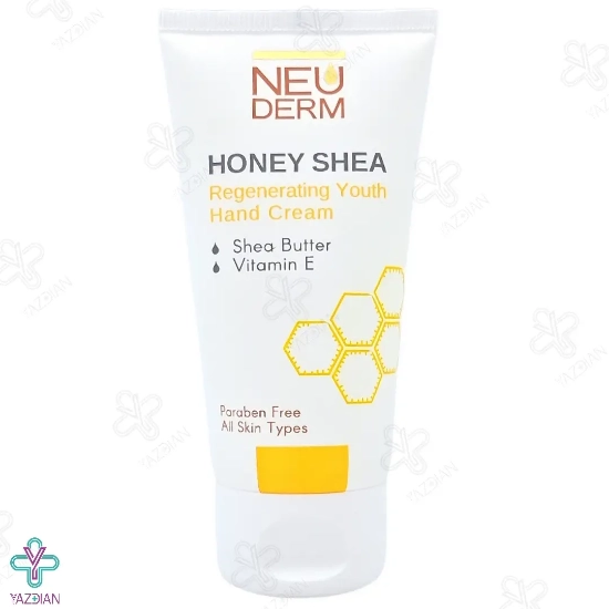 کرم دست عسل تیوپی نئودرم (Neuderm Re Nutrive Honey Shea Hand Thuppy Cream) با دارا بودن عصاره عسل، شی باتر و ویتامین E در ترکیبات خود می تواند ضمن افزایش رطوبت، نرمی و لطافت پوست، نواحی آسیب دیده و خشک پوست را به خوبی ترمیم نماید.