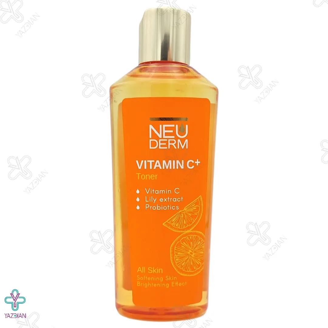 تونر ویتامین ث نئودرم مناسب پوست خشک (Neuderm Vitamin C Plus All Skin Toner) با دارا بودن ویتامین C، عصاره گل سوسن و گل صد تومانی و همچنین نیاسینامید، می تواند تمام اثرات مواد آرایشی و آلودگی های محیطی را از روی پوست صورت پاک کند و ضمن پاکسازی کاملا منافذ، PH پوست را نیز تنظیم نماید.