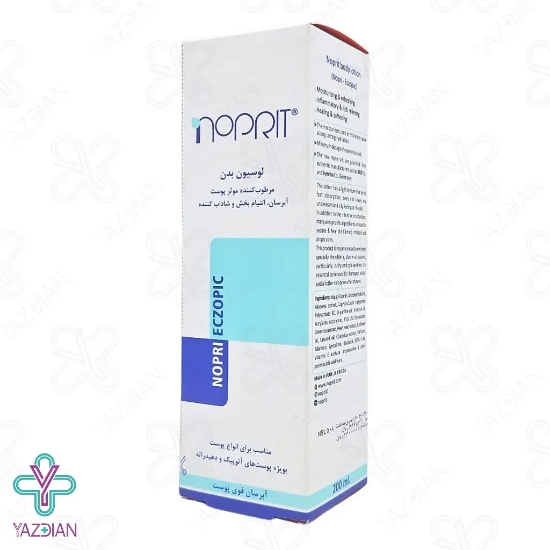 لوسیون بدن نوپری اگزوپیک نوپریت (Nopri Eczopic Noprit body lotion - 200 ml) دارای ترکیبات موثری است که مانع از خشکی پوست می شود و هم چنین موجب مرطوب کردن عمقی پوست شده و از ایجاد خارش و خشکی پوست جلوگیری می کند، در این محصول از روغن های گیاهی استفاده شده است که سرشار از ویتامین ها و مواد معدنی می باشد، روغن دانه کتان یکی از ترکیبات موجود در این محصول می باشد که سرشار از اسیدهای چرب امگا 9 و 6 می باشد و هم چنین دارای ویتامین B ، پتاسیم، منیزیم، فیبر، پروتئین و روی می باشد که موجب کاهش بثورات، التهاب و تحریک پوست شده و از ایجاد آکنه، جوش و اگزما نیز جلوگیری می کند و با تقویت سد دفاعی پوست موجب حفظ رطوبت پوست می شود و عصاره کالاندولا از دیگر ترکیبات موجود در این محصول بوده که دارای خاصیت ضد التهاب و ضد خارش می باشد و موجب رفع خارش شده و هم چنین در ترمیم بافت های سلولی نیز کمک می کند، عصاره آلوئه ورا موجود در این محصول موجب حفظ و تامین رطوبت پوست شده و از ایجاد چین وچروک جلوگیری می کند و ضمن رفع لک و تیرگی پوست موجب رفع التهاب، خشکی و خارش نیز می شود و هم چنین به روشن شدن پوست نیز کمک می کند.