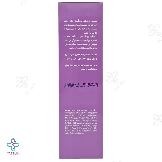 این مرطوب کننده بدن از خواص ضد حساسیت و ضد خارش برخوردار می باشد و می تواند با آبرسانی به پوست و مرطوب نمودن آن، مشکلات پوست های خشک و خارش دار را برطرف نماید. درخشندگی و شفافیت پوست نیز در اثر استفاده مداوم از این محصول افزایش یافته و نرمی، طراوت و شادابی خاصی برای پوست به ارمغان می آید.