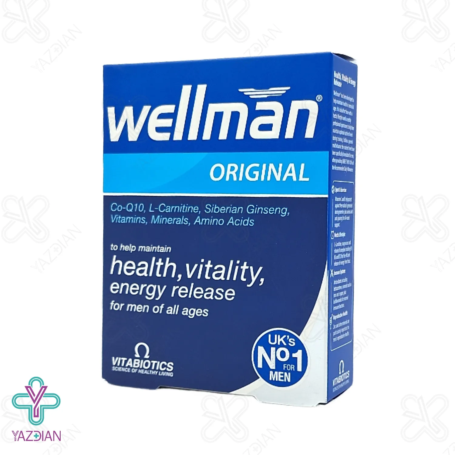 قرص مولتی ویتامین آقایان ول من اورجینال ویتابیوتیکس (Vitabiotics Wellman Original 30 Tabs) به عنوان یکی از داروهای تقویت قوای جسمی مردان با هدف تأمین نیازهای روزانه آقایان تهیه شده است و دارای انواع مواد مغذی نظیر انواع ویتامین ها، مواد معدنی، عصاره جینسینگ و اسید های آمینه بوده و می تواند قدرت و سطح انرژی آقایان را ارتقا بخشیده و سلامتی و شادابی آنان را افزایش دهد.