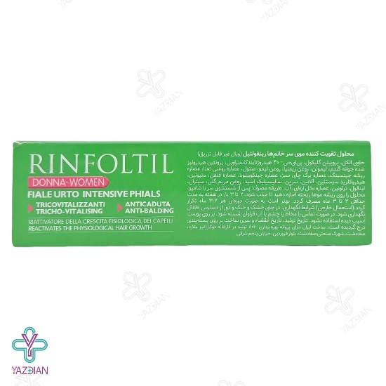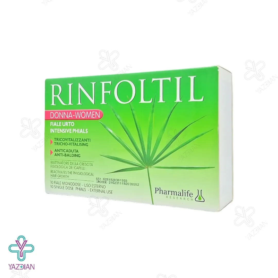 ویال تقویت کننده مو بانوان رینفولتیل فارمالایف (Pharmalife Rinfoltil Anti-Balding Serum 10 Phials) رشد فیزیولوژیکی مو را دوباره فعال می کند. از دیگر ویژگی های این محصول مراقبت از مو این است که ریزش مو و طاسی سر در بانوان را بهبود بخشیده و باعث احیا و بازسازی رشد مو می شود. بعلاوه بر روی پوست سر به مدت بیشتری نسبت به شامپو باقی می ماند به همین دلیل تاثیر گذاری آن نیز بیشتر است. این محصول میزان ضخامت مو را افزایش داده و به دلیل داشتن خواص آنتی اکسیدانی در خود مانع از پیری پیاز مو شده و میزان تولید چربی در آن را نیز تنظیم می کند.