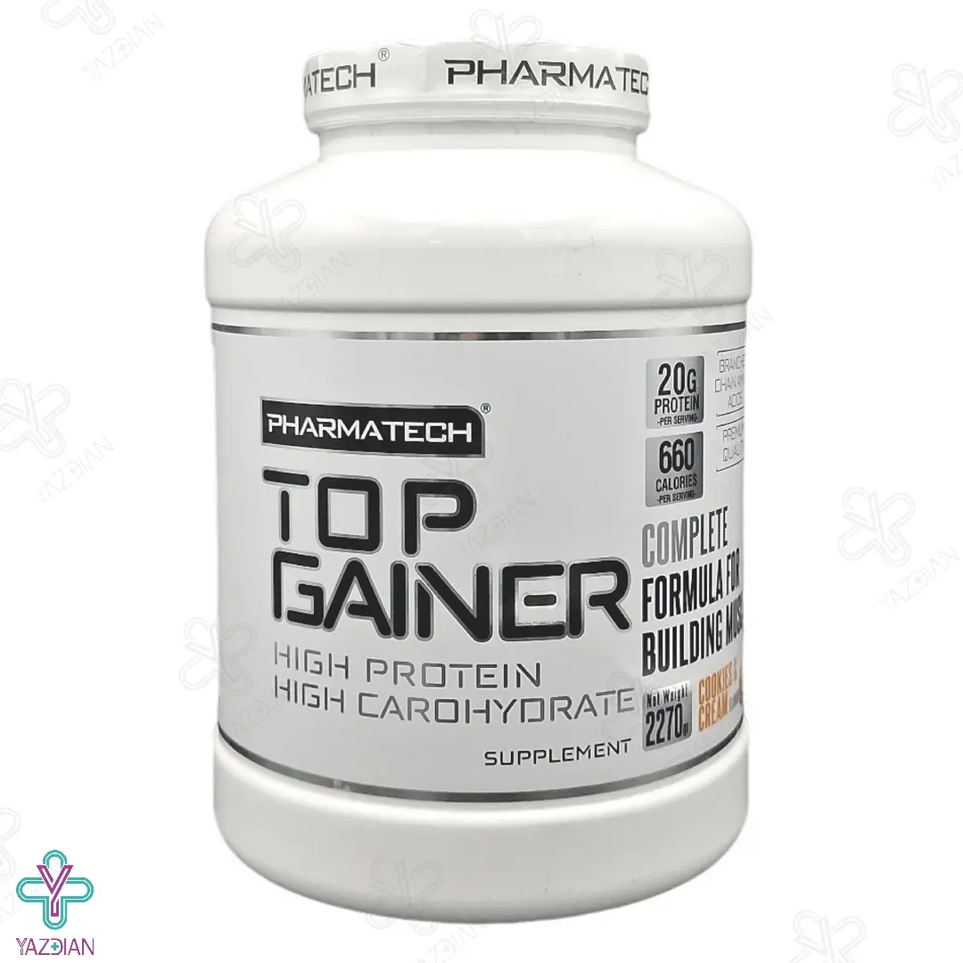 پودر تاپ گینر فارماتک (Pharmatech top gainer Powder 2270 g) برای افزایش وزن سریع در افراد ورزش کار و وزنه بردار بسیار مناسب است. این محصول دارای کربوهیدرات و پروتئین های سریع و آهسته هضم شونده است که سبب ثابت ماندن انرژی در بدن شده و در نتیجه ماهیچه های بدن ساخته و سرعت بهبود افزایش پیدا می کند.