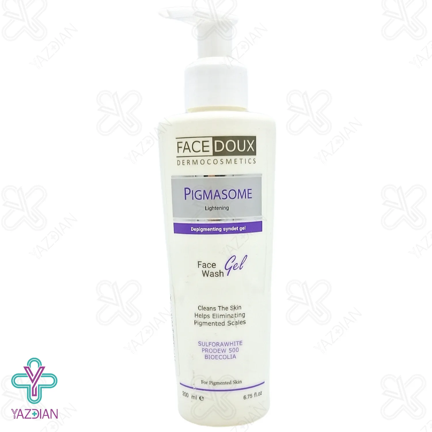 ژل شستشوی صورت پیگمازوم فیس دوکس حاوی بیوسورفکتانت ھای زیست تجزیهپذیر میباشد وعلاوه بر قدرت روشن کنندگی پوست با دو مکانیسم خنثیسازی رایکال ھای ROS و ھمچنین مھارα-MSH در پوست، دارای ترکیبات فوقالعادهای ازآمینو اسیدھای مفید برای تقویت پوست، بازسازی، رطوبترسانی و محافظت از آن میباشد.