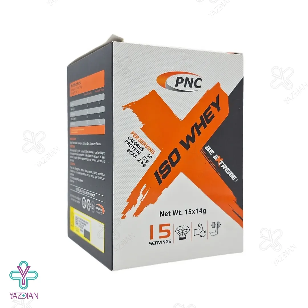 ساشه ایزو وی کارن (PNC Iso Whey Sachet Powder 14 g 15 Serving) با دارا بودن ویتامین ها، مواد معدنی و اسیدهای آمینه ضروری در فرمولاسیون خود می تواند به عضله سازی کمک کرده و عملکرد سیستم ایمنی بدن را بهبود ببخشد. با مصرف این مکمل می توانید پروتئین بیشتری را به رژیم غذایی خود اضافه نمایید.
