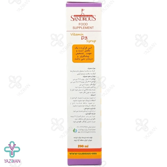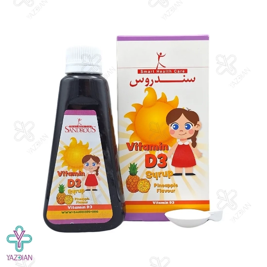 شربت ویتامین د3 سندروس (Sandrous Vitamin D3 Syrup 200 ml) سبب رشد و محکم شدن استخوان ها می شود. این محصول میزان جذب کلسیم و فسفر را در بدن بیشتر و با کم شدن میزان دفع این دو ماده از به وجود آمدن مشکلاتی مثل پوکی استخوان جلوگیری می کند. کمبود ویتامین D3 در کودکان باعث ایجاد بیماری ها و مشکلاتی مثل راشیتیسم، بزرگی جمجمه، دیر دندان در آوردن، دیر نشستن، دیر راه افتادن و برجستگی بر روی سینه می شود. به همین دلیل استفاده از این شربت برای جلوگیری از ایجاد چنین مشکلاتی در کودکان بسیار لازم است.