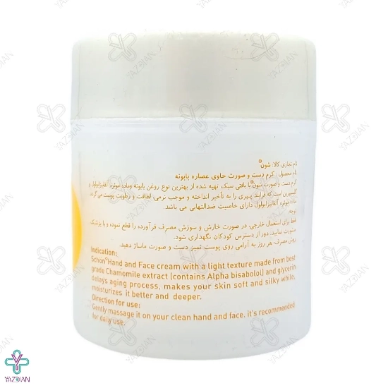 برند شون جهت پاسخگویی به سلیقه های مختلف، اقدام به تهیه کرم های دست و صورت شون با عصاره های گیاهی متنوع نموده است. کرم نرم کننده دست و صورت بابونه شون (Schon Chamomile Cream 150ml)، بابهره گیری از فرمولاسیونی فوق العاده جزو یکی از مرغوب ترین کرم های نرم کننده به حساب می آید.