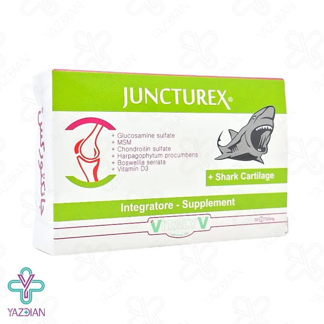 قرص تقویت مفاصل شارک کارتیلاژ 750 میلی گرم جانکتورکس ویتالیو (Shark cartilage joint tab 750 mg Vitalyv juncturex – 30 PCS ) یک مکمل عالی جهت سلامت و عملکرد مناسب مفاصل می باشد، این محصول دارای ترکیبات مغذی و گیاهی می باشد، ترکیبات گیاهی موجود در این محصول سبب تقویت کارایی مفاصل شده و ویتامین د3 موجود در آن به جذب کلسیم و فسفر کمک کرده و سبب سلامت ایمنی بدن می شود.