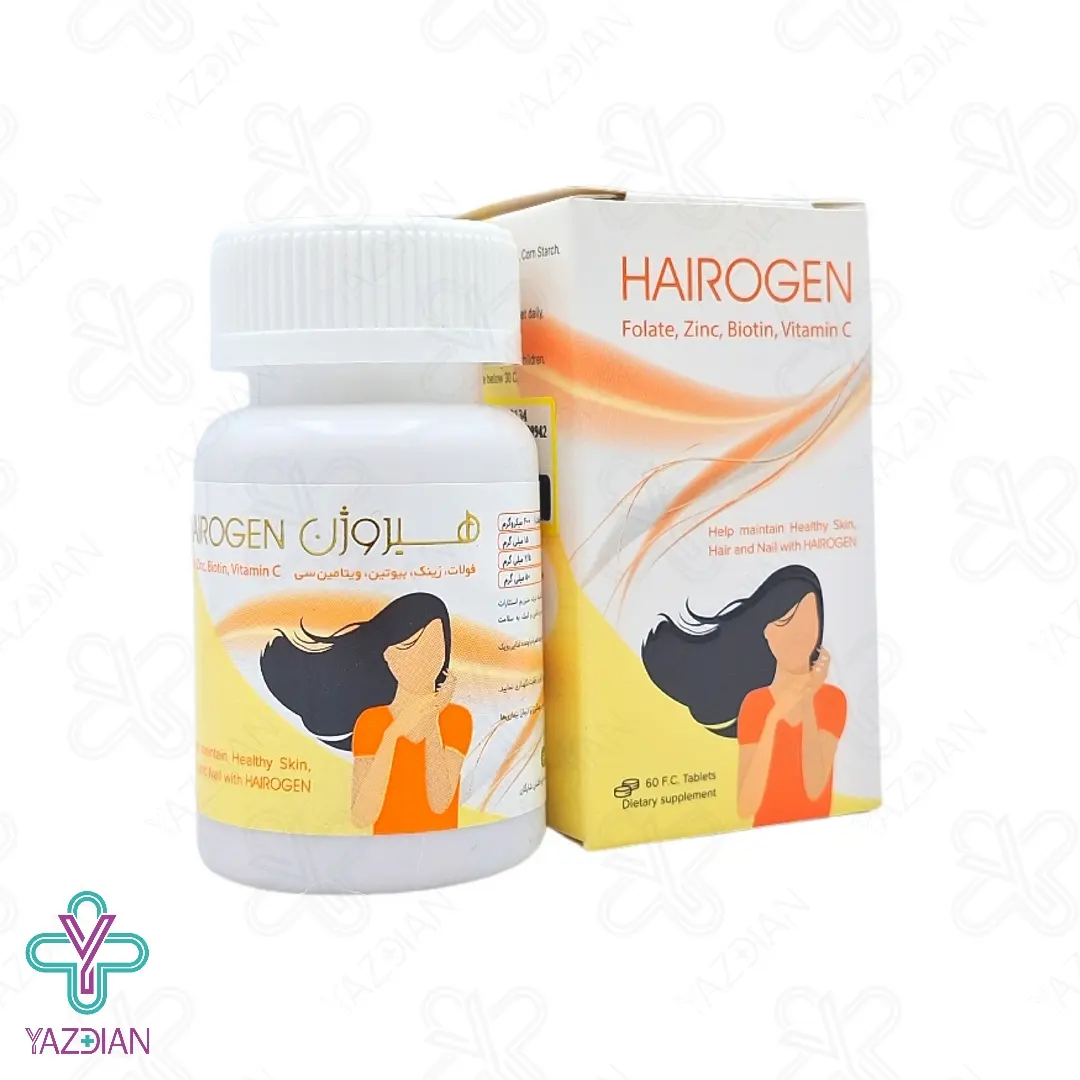 قرص ضد ریزش مو هیروژن شایگان (Shaygan Darou Afshan Hairogen ۶۰ Tablets) با غنی بودن از ویتامین H یا همان بیوتین مانع از ریزش مو ها می شود و حافظ سلامت پوست، مو و ناخن می باشد. در اثر کمبود این ویتامین علائمی مثل پوسته پوسته شدن پوست صورت، بی حسی انگشتان دست و پا، راشهای قرمز، ریزش مو، ورم ملتحمه، افسردگی و خستگی ممکن است رخ دهد. در اثر استفاده طبق دوز مصرفی پیشنهادی از بروز این علائم جلوگیری می شود.