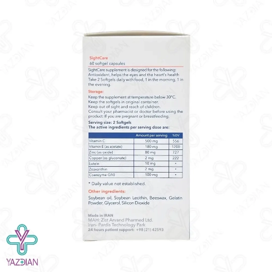 کپسول سلامت چشم قلب Sight Care اروند فارمد را باید به دور از دسترس کودکان قرار دهید.