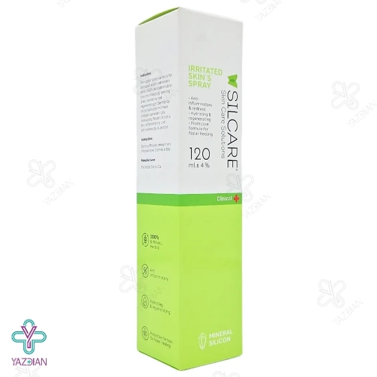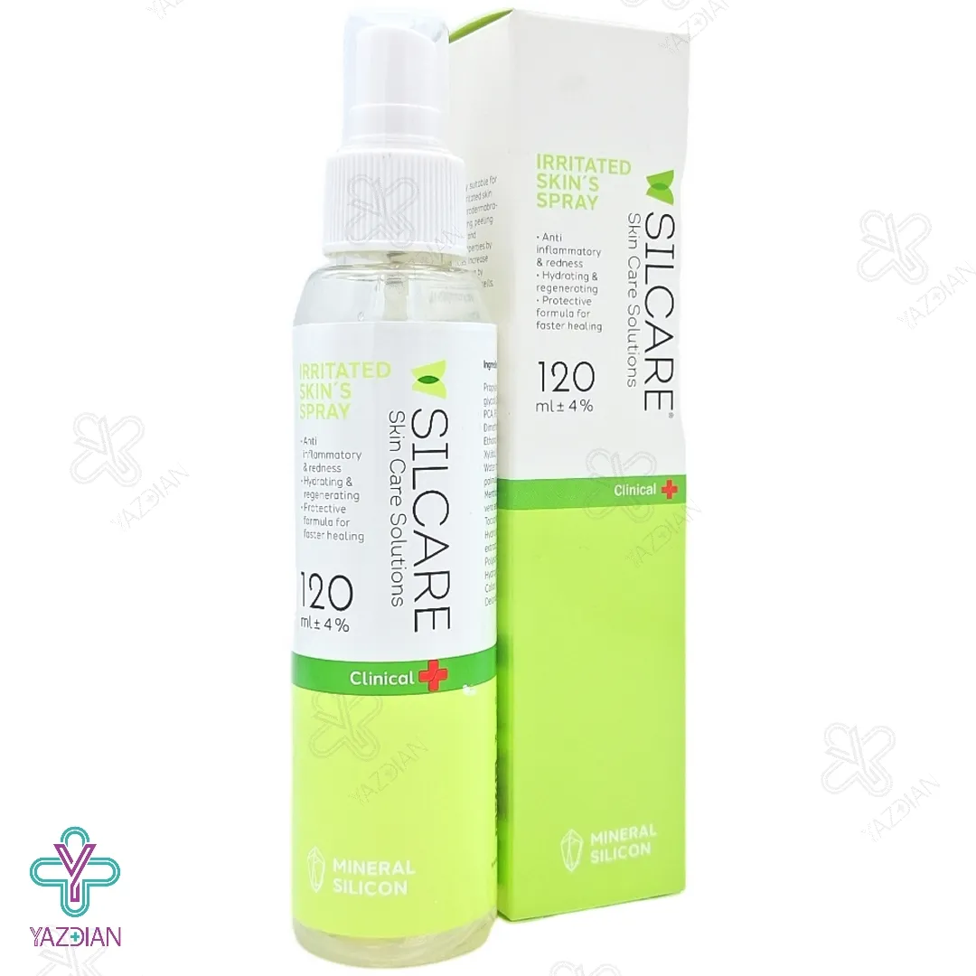 اسپری ترمیم کننده سیلکر (Silcare Irritated Skins Spray 120 ml) پوست های آسیب دیده را ترمیم می کند. از دیگر ویژگی های این محصول این است که باعث خنک شدن پوست و کم شدن میزان درد و سوزش پس از انجام لیزر می شود. این اسپری هم چنین با آب رسانی و مرطوب کردن التهاب و قرمزی ایجاد شده در پوست را برطرف کرده و به دلیل داشتن خواص آنتی باکتریال و ضد قارچ از به وجود آمدن جوش نیز پیشگیری می کند.