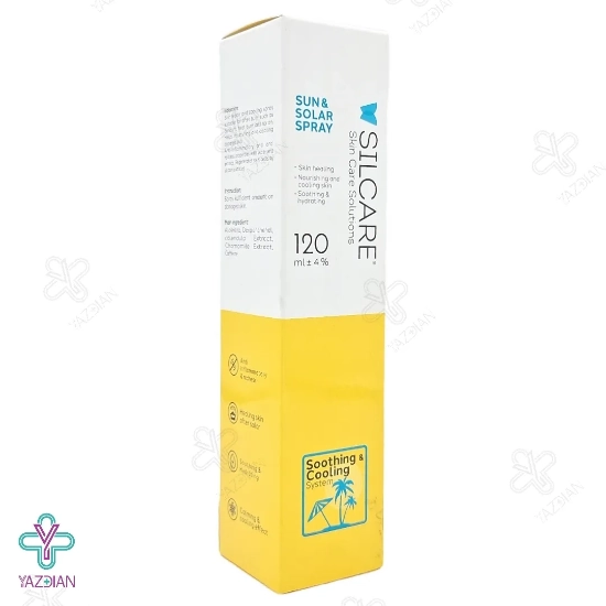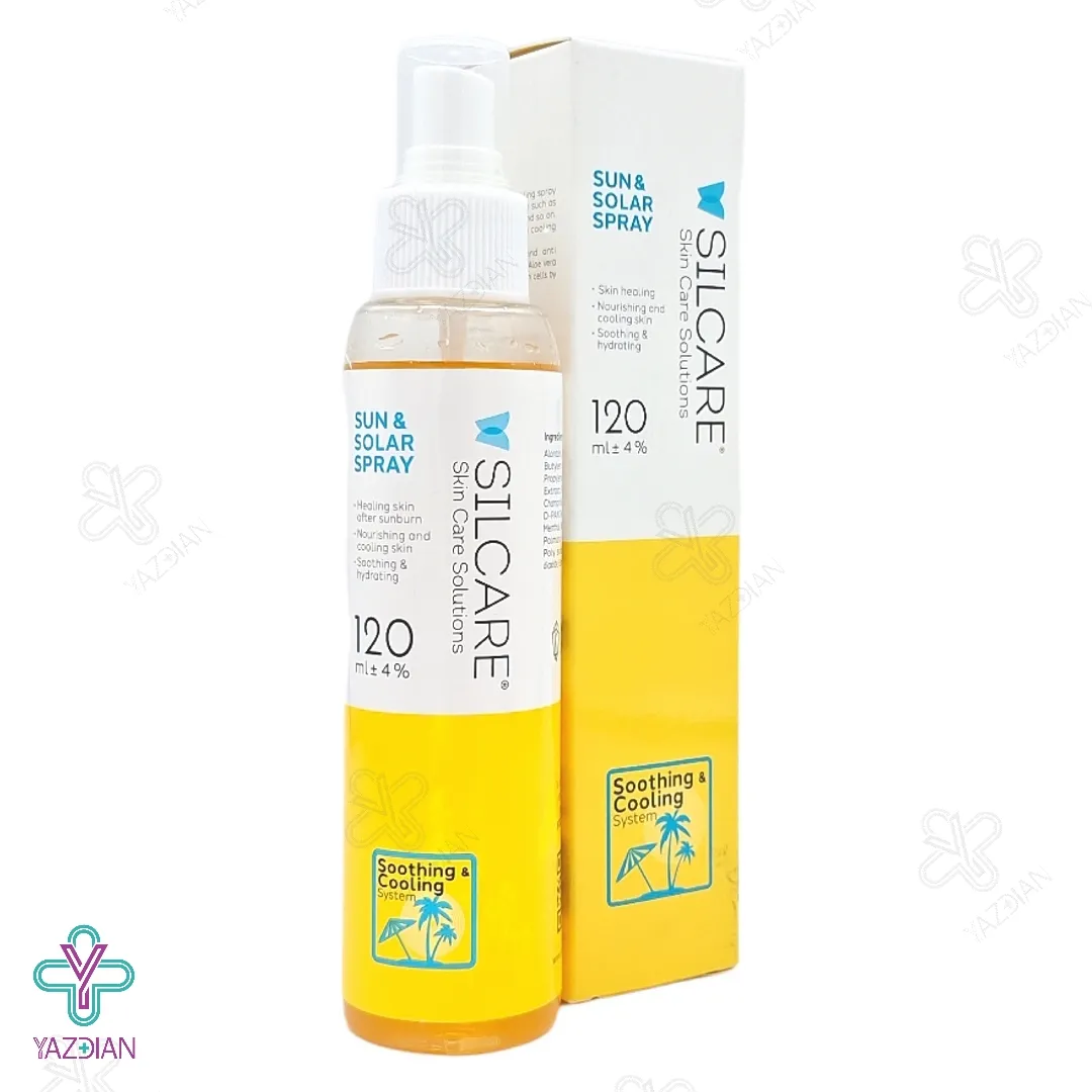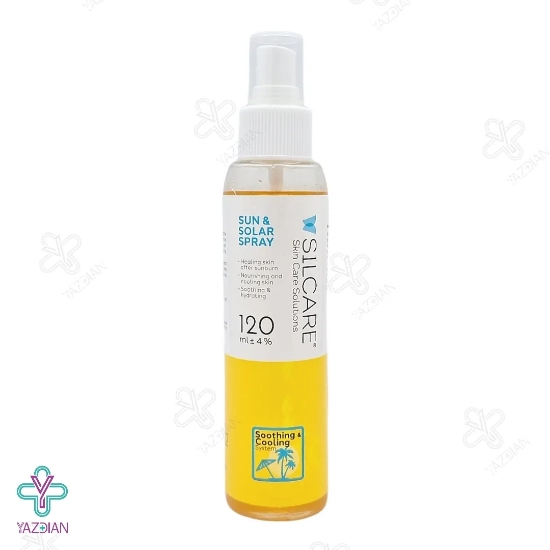 اسپری مرطوب کننده آفتاب و سولار سیلکر(Silcare Sun & Solar Spray 120 ml) برای درمان سوختگی پوست به علت آفتاب سوختگی، حرارت و غیره کاربرد دارد. از دیگر ویژگی های این محصول این است که پوست را التیام بخشیده و باعث تغذیه و خنک شدن پوست می شود.