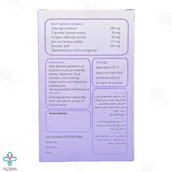 وجود عصاره میوه پنج انگشت در ترکیبات گیاهی این فرآورده باعث می شود علائم پیش از قاعدگی به خصوص درد سینه ها و التهابات برطرف شود. همچنین می تواند احتباس مایعات، گرگرفتگی، افسردگی و علائم یائسگی را از بین ببرد. از عصاره شنبلیه و زنجبیل در ترکیبات این فرآورده نیز استفاده شده است که می توانند خونریزی قاعدگی را کاهش دهند. ویتامین C موجود در آن نیز جذب آهن را افزایش داده و می تواند در این دوران مهم، آهن مورد نیاز بدن بانوان را تأمین نماید.